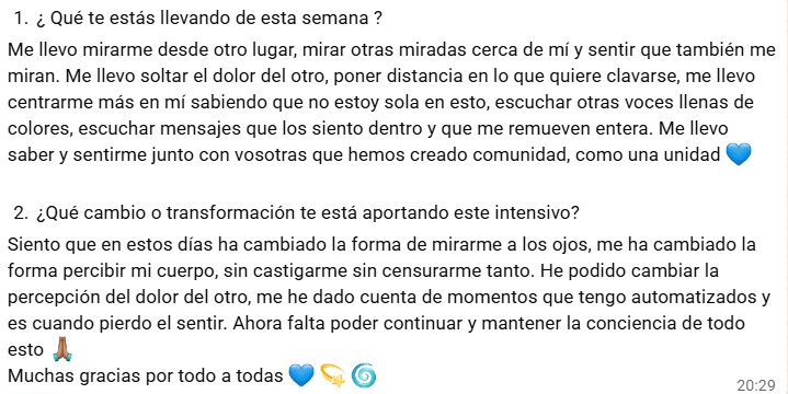 2. ¿Qué cambio o transformación te está aportando este intensivo?